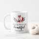 Eine wunderschöne Valentinstag-Tasse mit einem niedlichen kleinen Fuchs, umgeben von Blumen und einem handgeschriebenen Skript "Good Morning Beautiful", das Sie mit Ihrem eigenen Namen und Text personalisieren oder leer verlassen können. Das perfekte Geschenk, um jemanden am Morgen zum ersten Mal lächeln zu lassen. Entworfen für Sie von SunFreeStar.