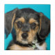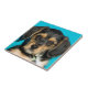 Ein entzückender Welpe abgeschieden über einem blauen Hintergrund mit Kopienraum für Ihren Text oder QR Code.