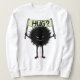 Umarmen Sie ein Sweatshirt mit einem niedlichen bösen Monster - grinsend haariger Charakter aus der Familie des Bösen Blume Bug. Es enthält ein Schild mit der handgeschriebenen Welt "Umarmen?". Dieses freundliche, komische Geschöpf hat hübsche, kleine, totfreie Socken, nur um sich in dieser unfreundlichen Welt die Füße warm behalten.