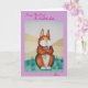 Diese verspätete Geburtstagskarte hat eine originelle Illustration eines niedlichen braunen Hasen auf der Vorderseite. Das kuschelige kleine Tier klopft einen Haufen hübscher und farbenfroher Blume. Ich denke, diese süße Kaninchenillustrierung wird Erwachsenen und Kindern jeden Alters ein Lächeln bringen. Auf der Innenseite dieser Grußkarte befindet sich eine kurze, lichtdurchflutete Originalbotschaft, die einem ganz besonderen Geburtstag glückliche Wünsche schickt. Diese besondere verspätete Grußkarte hatte einen schönen weichen lila Rahmen.