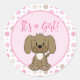 Niedlicher brauner Hund Pink Polka Dot Baby Dusche Runder Aufkleber