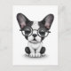 Niedlicher Bulldog Welpe mit Brille, weiß Postkarte