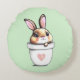 Niedlicher Bunny Pflanze Pot auf Light Lime Green Rundes Kissen