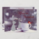 Diese erste Geburtstagseinladung für die Cartoon-Mama und das Baby-Holiday-Angebot mit einem Freund von Rot-Vogel, der eine im Schnee verlassen Teetasse entdeckt.