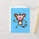 Niedlicher Cartoon Affe auf Blue Postcard Postkarte