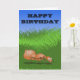 Herzlichen Glückwunsch zum Geburtstag eines glücklichen Crawlers, passen Sie diese Karte an Ihre Bedürfnisse und Spaß Anzug. Eine braune Cartoon Ameise, die fröhlich lächelt, gerahmt von üppigem Grün.