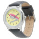 Kinder Edelstahluhr mit schwarzem Lederarmband