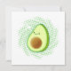 Ein Avocado im Stil eines Cartoon mit beängstigender Wirkung auf den Hintergrund. Geschenke Idee für Erwachsene und Kinder, dass Liebe Avocados und gesundes Essen. Für handgeschriebene Nachrichten ist die Karte im Rücken leer.
