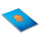 Ein niedlich orangefarbener Cartoon-Oktopus. Blauer Hintergrund. Babyhefte Geschenkidee für Kinder.