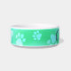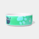 Niedlicher Cartoon Cat auf grünem Pawprint Napf