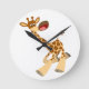 Niedlicher Cartoon, der Giraffenmauer verliebt Runde Wanduhr