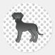 Desteis originelle Cartoon-Illustration einer schwarzen Fellfarbe Great Dane Rasse Hund. Der Hintergrund weist ein Muster grauer Hundepfoten auf.