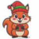 Feierliche Illustration eines fröhlichen Eichhörnchens im Stil des Weihnachtsmannes, das ein verpacktes Geschenk enthält. Ideal für Weihnachtsdesigns, Grüße und saisonale Werbeaktionen.