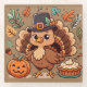 Niedlicher Cartoon Erntedank Truthahn und Kürbis Glasuntersetzer