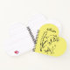Ein lustiges, farbenfrohes, herzförmiges Wendelheft mit einem originellen, zeichnend Cartoon eines hübschen Kätzchens! Hellgelber Hintergrund.