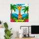 Niedlicher Cartoon Giraffe in einer tropischen Lan Poster