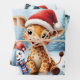 Niedlicher Cartoon Giraffe mit Weihnachtsmannmütze Geschenkpapier Set