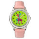 Kinderuhr aus Edelstahl mit rosa Lederarmband