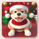Niedlicher Cartoon Hund in Santa Outfit Getränkeuntersetzer