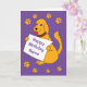 Niedlicher Cartoon-Hund, der eine Notiz hält und von Pfoten umgeben ist. Nachricht liest Happy Birthday Name und kann leicht auf eine Nachricht Ihrer Wahl personalisiert werden. Die Karte hat einen lila Hintergrund und der Hund ist orange mit orangefarbenen Pfosten! Danke, dass du meine Cartoon gesehen hast!