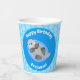 Dieser niedliche Seeotter ruht im Ozean. Dieser Otter macht jeden glücklich! Gezeichnet in bezaubernden Cartoon-Illustrationsstil auf blauem Hintergrund für eine lustige Feier!