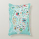 Niedlich und bunt, Cartoon illustriertes Nordpol-Dorf, Akzentkissen. Pillow Eigenschaften, Sankt, Elfe, Ren, Gebäude, Sleigh, Bäume und Süßigkeit. Ziehen Sie sich vom Zuckerstange-Streifenmuster der Kisseneigenschaften niedliches Rotes und weißes zurück.