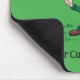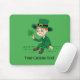 Gel Mousepad mit einer Illustration eines niedlichen lächelnden Kobols mit einem grünen Anzug, einem Hut auf der Oberseite während der Veranstaltung eines Kleeblatts Blatt Ein perfektes Design zum Feiern des Heiligen Patrick's Day, gezeichnet von Radka2D