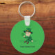 Schlüsselanhänger mit einer Illustration eines niedlich lächelnden Kobolaun mit einem grünen Anzug, einem Hut auf der Oberseite während der Veranstaltung eines Kleeblatt Blatt Ein perfektes Design zum Feiern des Heiligen Patrick's Day, gezeichnet von Radka2D