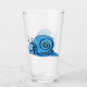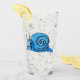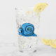 Dieser Glaskrüber für Getränke hat eine niedliche Cartoon-Schnecke, die ein großes Lächeln auf seinem Gesicht und Muschel ist ein Muster von hellen und dunklen aqua Blues auf der Vorder-und Rückseite.