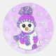 Niedliche lila Snowman und Snowflakes Weihnachtsaufkleber.