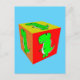 Niedliche Zeichnungen eines Dinosauriers auf einem Würfel. Benutzerdefinierte Postkarten. Geschenkidee für Kinder.