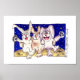 Niedlicher Cartoon Rabbits Moon Dancing Poster dru