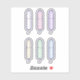 Ein weiteres niedliches Aufkleberblatt von JessicaAmber - gefragt über Sonderanfertigungen! Dieses kiss-geschnittene Vinyl-Aufkleber-Pack ist ein idealer Gefallen für das erste Party Ihrer Kind- oder Teenagertochter. Der Tampon ist im Stil eines kawaii-Cartoon gezeichnet, mit einem kleinen Happy-Gesicht in Weiß, Rosa, lila, Gelb, Grün und Blau. Sie können die Farben im Bildschirm Anpassen bearbeiten. 🩸 Für weitere Vorräte von Party aus der ersten Periode besuchen Sie bitte mein Geschäft Zazzle.com/JessicaAmberArtist 🩸 Für besondere Bestellungen, schreiben Sie mir auf Zazzle