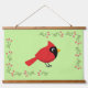 Niedlicher Cartoon Roter Kardinal mit Blume Wandteppich Mit Holzrahmen