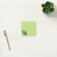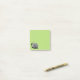 Niedlicher Schneckecharakter scherzt Post-Itanmerkungen mit einem Tintenzeichnen eines Cartoonschneckecharakters mit einem Lächeln, punktiert gewundene Augen und Weiß alle über seinem Körper und Muschel über kundengerechtem hellgrünem Hintergrund.