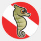 Niedlicher Cartoon Seepferd Diving Flag Runder Aufkleber