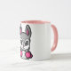 Fügen Sie Ihrem Kaffeemaschine einen spielerischen Stupf mit diesem bezaubernden und dennoch selbstbewussten Boxhasen-Design hinzu. Dieses Cartoon Maskottchen mit einem stylisierten, grauen Kaninchen mit großen expressiven Augen und rosa Boxhandschuhen strahlt Charme und Entschlossenheit aus. Die kühnen Konturen und die lebhaften Farbtöne machen diese Tasse zu einem hervorragenden Ort für Sportbegeisterte, Boxfans oder alle, die ein einzigartiges und lustiges Design Lieben. Ob für Zuhause, Büro oder als Geschenk - diese Tasse ist eine Knock-out-Ergänzung zu jeder Kollektion!