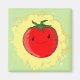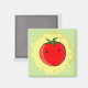 Rote Tomate im niedlichen Cartoon. Benutzerdefinierte Magnete. Handgezeichnet Design mit gelbem Anstrich im Hintergrund. Geschenkidee für Menschen aller Altersgruppen, die Tomaten und niedliche Gemüse Liebe.