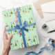 Ideal, um Ihre Weihnachtsgeschenke einzupacken! Ein niedliches Weihnachtsdesign von Weihnachten, Rentieren, Schneemann und Bonbons, die von der Spitze des WeihnachtsStrumpfs an einem coolen Minzgrün hängen. Dieses stilvolle, niedliche Design im Stil eines Cartoon ist perfekt für Kinder und Familien. Feiern Sie Weihnachten mit einem Lächeln auf Ihrem Gesicht!