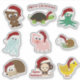 Niedliches Aufkleber-Set von festlichen Cartoon, die Weihnachtsmannmützen für die Winterferien tragen.