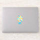 Niedlicher Walaufkleber mit farbenfroher Abbildung eines lächelnden Cartoon Wals, der hellblaue, gelbe und orangefarbene Wirbel schmückt. Dieser niedliche Aufkleber eignet sich hervorragend für alle Wal liebenden Mädchen, die auch Liebe Spaß und helle Farben haben.
