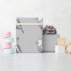 Desteis originelle Cartoon-Illustration eines weißen Cockatielvogels. Die Hintergrundfarbe ist grau.
