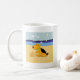 Helle und heitre Tasse mit Cartoon Airedale-Terrier-Hund auf dem Strand, der ein Sandschloss macht! Fügen Sie Ihrer Tassensammlung hinzu oder erfreuen Sie jemand mit diesem Geschenk!
