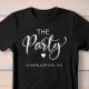Niedlicher Junggeselinnen-Abschied-T - Shirt mit "The Party" in einem schicken weißen Schriftzeichen mit Herzenslust und "Charleston, SC" in schlichter, moderner weißer Typografie. Sie können das Ziel des Party und die Farbe des T - Shirt ändern. Für die Braut steht ein koordinierender T - Shirt "Ehefrau des Party" zur Verfügung.