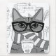 Eine hübsche, in Schal verpackte Kitty, Brille tragen und Kaffee auf personalisiertem Mauspad halten.
