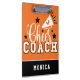 Niedlicher Cheftrainer Personalisiert Orange und B Klemmbrett