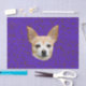 Niedlicher Chihuahua Hund hellen lila Hintergrund gelbe Sterne Handschuh-Papiertaschentuch. Tan Farbe min Button Mix Rasse Hunde gedruckte Muster Design für Hunde Liebhaber. Schöne, mädchenhaft elegante, trendige, coole, schicke, gürtelige Geschenkpackung. Bildrecht Marg Seregelyi Fotografie.