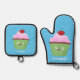 Niedlicher Cupcake Cartoon Ofenhandschuh & Topflappen-Set