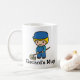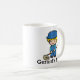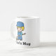 Niedlicher Hüter / Hausmeister in blauen Overalls mit einem Mopp. Für den Angestellten. Anpassen des Texts
