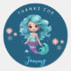 Niedliche Meerjungfrau Kindergeburtstag Party Classic Round Sticker Niedlich Mermaid Thema Mädchen Geburtstagsparty Gunst Aufkleber mit Aquarellbild einer Meerjungfrau einige rosa Blume herum. Im Text steht: "Danke für die Teilnahme."